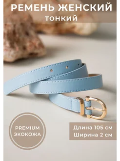 Ремень кожаный голубой узкий для платья пальто и брюк