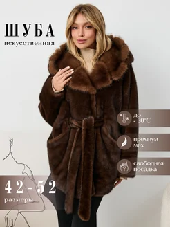 Шуба искусственная экомех с капюшоном укороченная