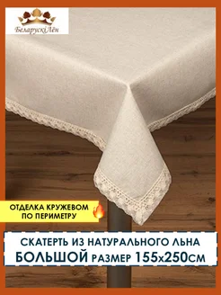 Скатерть на новогодний стол льняная с кружевом 155х300 см
