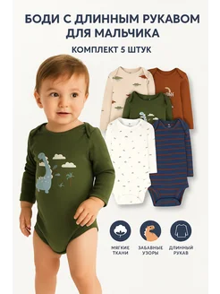 Набор боди для новорожденных с длинным рукавом 5 штук