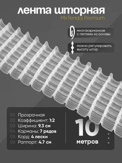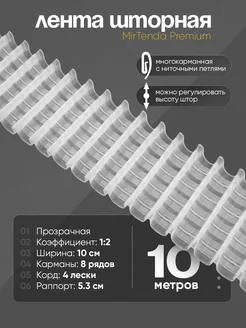 Тесьма шторная лента с ниточными петлями прозрачная 10 м