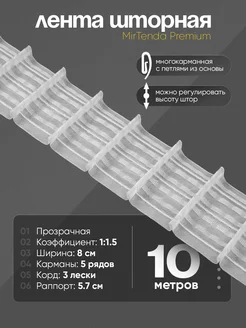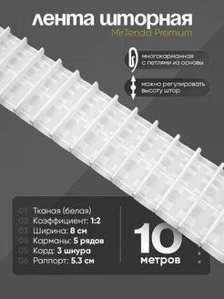 Тесьма шторная лента Premium белая, 10 метров, 8 см