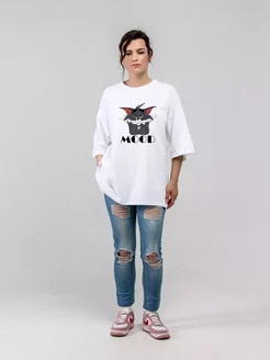 Светящаяся футболка оверсайз с надписью и принтом Том