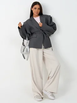 Удлиненный оверсайз пиджак с широкими плечами