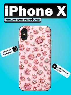 Чехол на iPhone X с Лапками и блестками