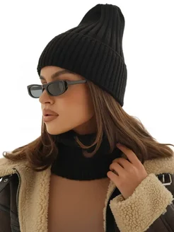 Шапка женская зимняя бини без отворота теплая
