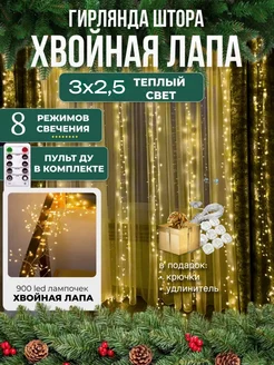 Хвойная лапа гирлянда 3х2.5 новогодняя желтый свет