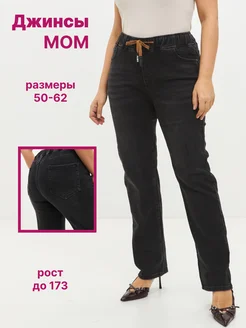 Прямые джинсы на резинке большие размеры с высокой посадкой