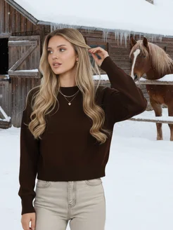 Свитер укороченный вязаный коричневый оверсайз теплый