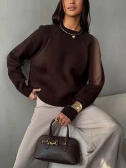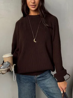 Свитер вязаный коричневый оверсайз теплый