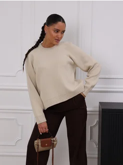 Свитер оверсайз вязаный теплый молочный укороченный