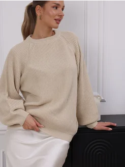 Свитер молочный вязаный теплый оверсайз крупная вязка