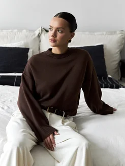 Свитер джемпер коричневый вязаный оверсайз