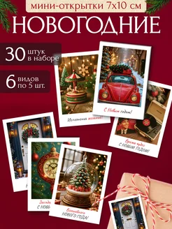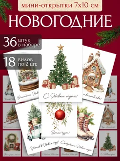 Новогодние мини открытки с пожеланиями набор 36 шт