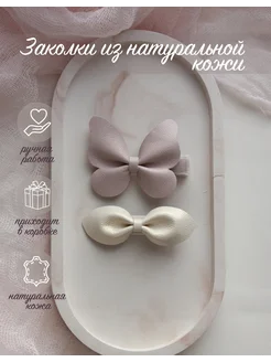 Заколки зажимы из натуральной кожи набор бабочка и бантик