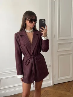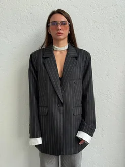 Пиджак в полоску оверсайз на завязках со съемными манжетами