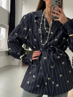 Пиджак в полоску жакет оверсайз блейзер с принтом в цветочек