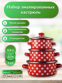Набор эмалированных кастрюль с крышками 601EDG 0,5 0,7 1,1 л