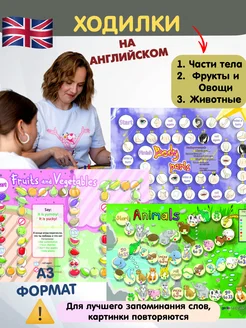 Настольная игра - Английский (Части тела, фрукты, животные)