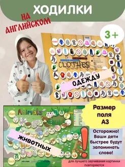 Настольная игра-Английский (Одежда, Еда, Животные)