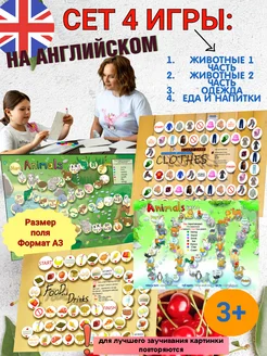Обучающая настольная игра английский.2шт. Животные и одежда