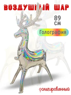 Шар фольгированный Олень Серебро 3D Голограмма 89 см