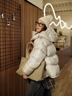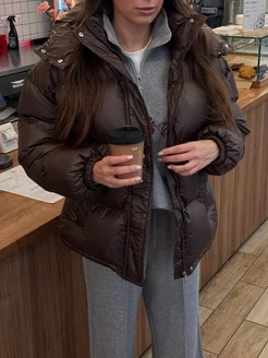 Куртка зимняя удлиненная с капюшоном оверсайз