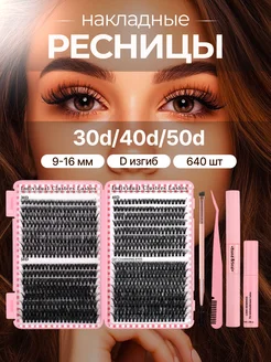 Накладные ресницы пучки с клеем 640 штук изгиб D