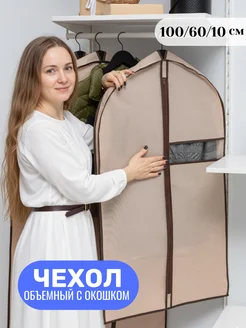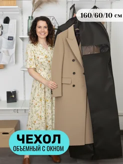 Объемный чехол с окошком и ручкой для длинной одежды 160 см