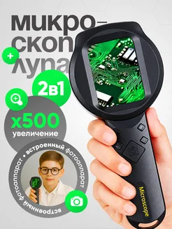 Микроскоп детский карманный с камерой и подсветкой лупа