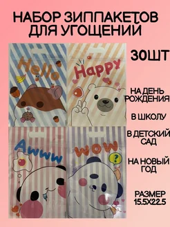 Набор пакетиков Милые звери для подарков zip-look 30шт