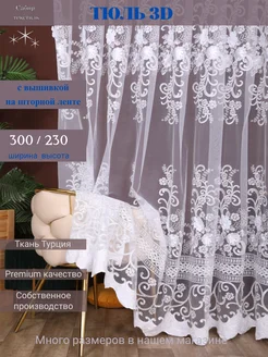 Тюль 3д в спальню и гостиную с вышивкой со стразами 300х230