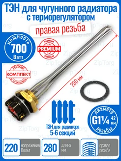 ТЭН 700Вт правая резьба G1 1 4 чугунного радиатора отопления