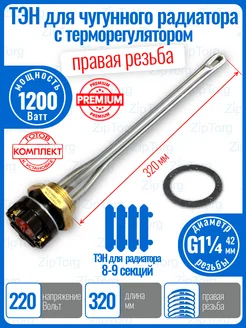 ТЭН 1200Вт правая резьба G1 1 4 чугунного радиатора