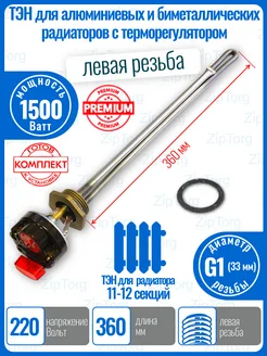ТЭН 1500 Вт левая резьба G1 алюминиевого биметалл радиатора