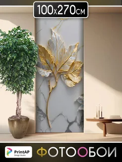 Моющиеся флизелиновые 3D фотообои. Листья мрамор 100х270 см