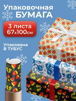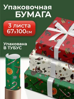Набор упаковочной бумаги Новогодней 3 листа 67×100 см