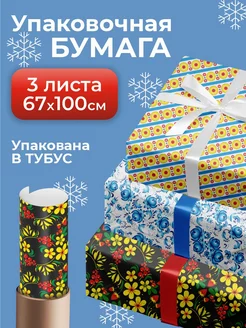 Набор упаковочной бумаги Русские узоры 3 листа 67×100 см