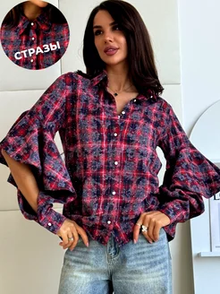 Рубашка оверсайз в клетку модная с рукавами