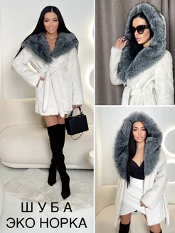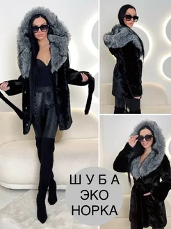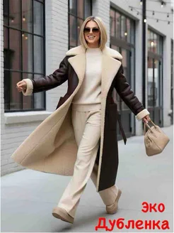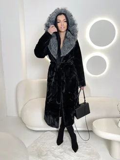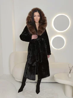Дубленка парка зимняя с мехом и капюшоном удлиненная