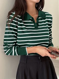 Джемпер поло оверсайз в полоску с длинным рукавом