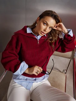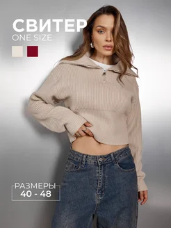 Свитер с горлом короткий на молнии полузамок y2k