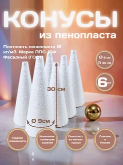 Конусы из пенопласта, 30 см, Набор 6 штук
