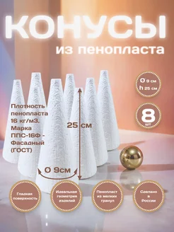 Конусы из пенопласта, 25 см, Набор 8 штук