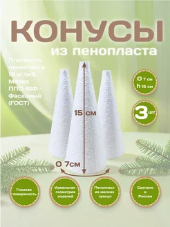 Конусы из пенопласта, высота 15 см, Набор 3 штуки