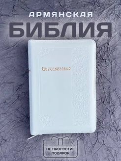 Армянская Библия белая, кожаная, с молнией