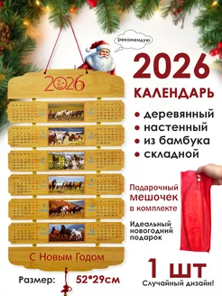 Календарь бамбуковый настенный символ 2026 года Лошадь 1 шт