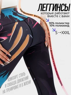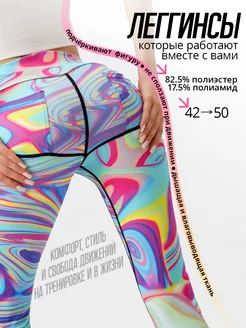 Легинсы для фитнеса с принтом, лосины с рисунком с карманом