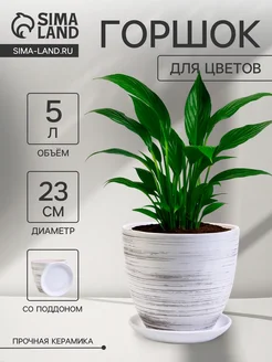 Горшок для цветов керамический с поддоном белый 23 см