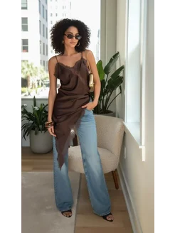 топ шелковый с кружевом в бельевом стиле, платье комбинация